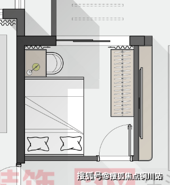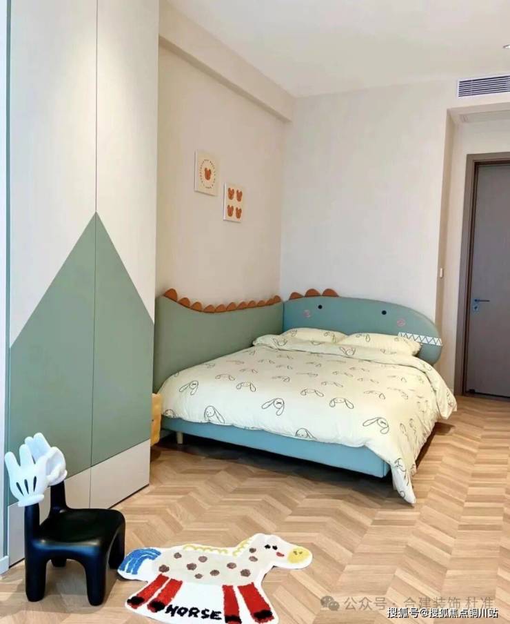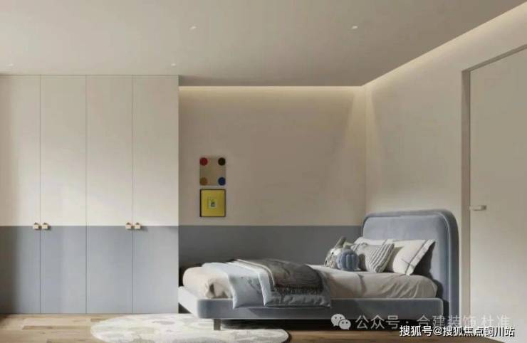 南向次卧室因为阳光和通风比较充足,所以这稿考虑做成了儿童房,常规布局的情况下,放书桌的尺寸非常局促,所以改为1米5床靠墙放,床尾可放下个小书桌,另一侧还可做1米5+的衣柜,小孩子的衣服非常够放了