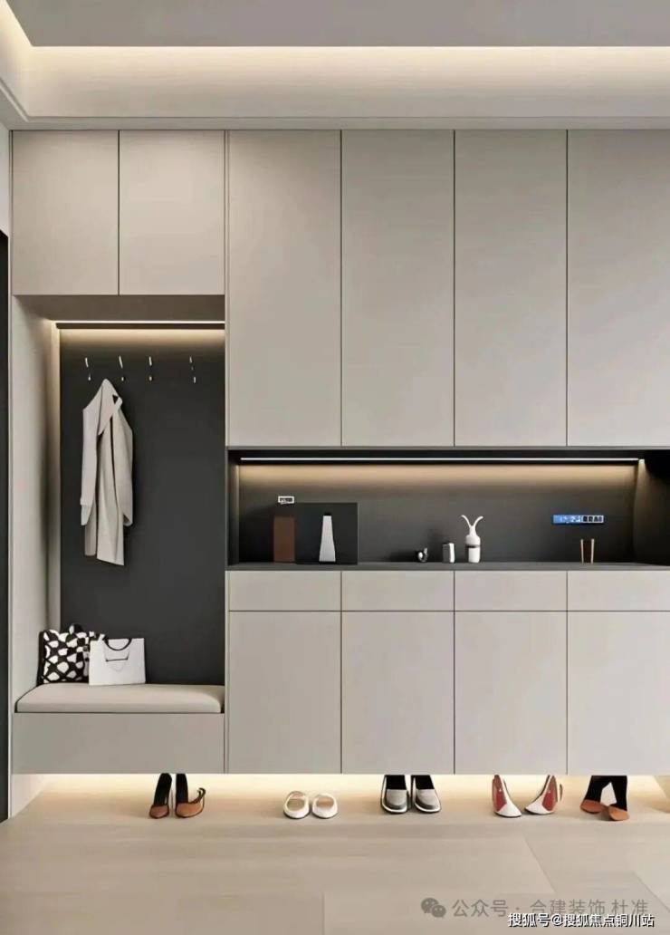 形式非常多,如果喜欢其他形式的业主可以后期跟您的设计师一对一深化,喜欢偏意式或者黑白灰的 也可以做偏造型玄关的鞋柜