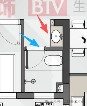 公共卫生间 做了干湿分区 将原有墙体拆除,新砌湿区墙体,浴室柜外置,内外可以同时使用互不打扰