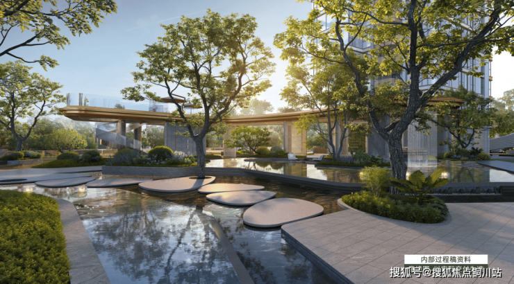 【度假岛景观】一字布局引水入园,11座"岛"与3座"屿"串联,高定精奢度假生活艺境