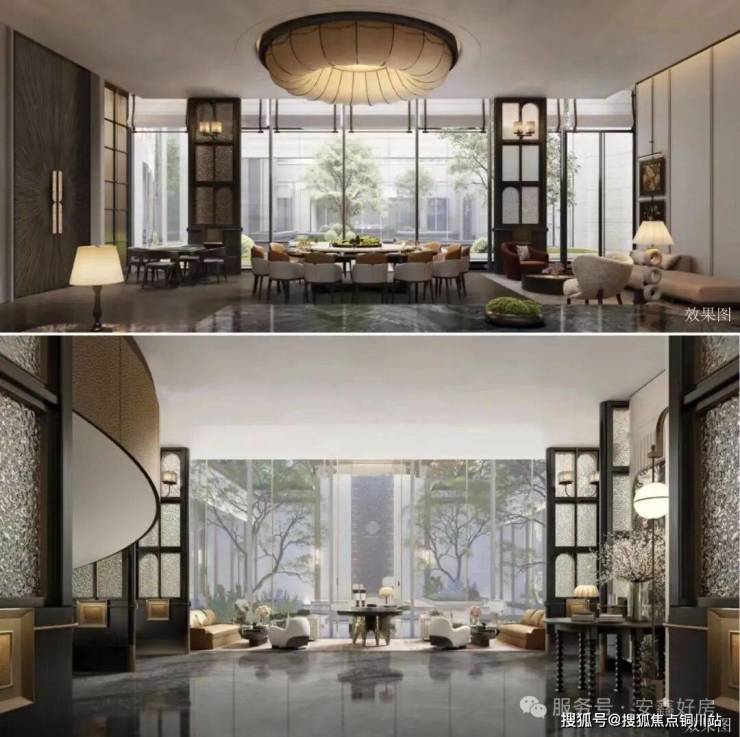 主入口打造双大门,东侧约39米、西侧约43米的超宽尺度,高度约8米,臻选进口木纹石、蓝翡翠石、透光云石等奢石,结合十余项复杂精工技艺,构建当代豪宅空间质感巨作。