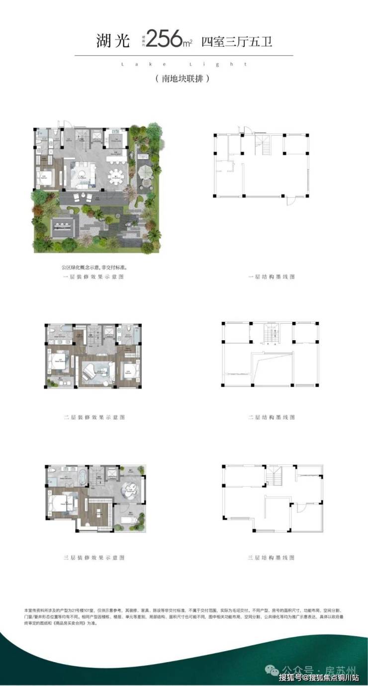 (1)联排:打造约246m²、约256m²(边户)、约280m²三个户型面积,以迭代的联排作品,致敬真别墅的回归