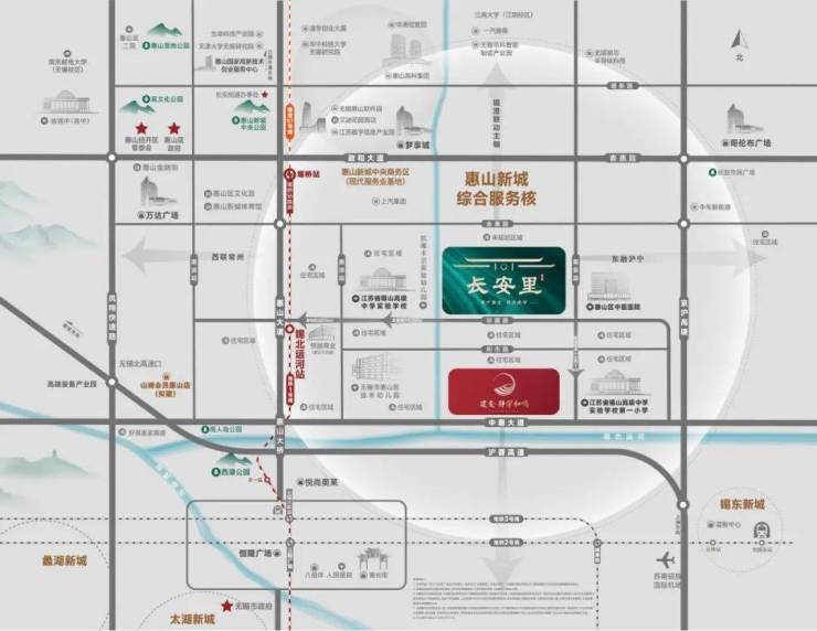交通上,地铁1号线、快轨S1线、凤翔路高架、中惠大道快速化改造(建设中)、霞客大道快速化改造(建设中)、无锡北高速枢纽等立体交通环绕,可快速通达全城乃至长三角。
