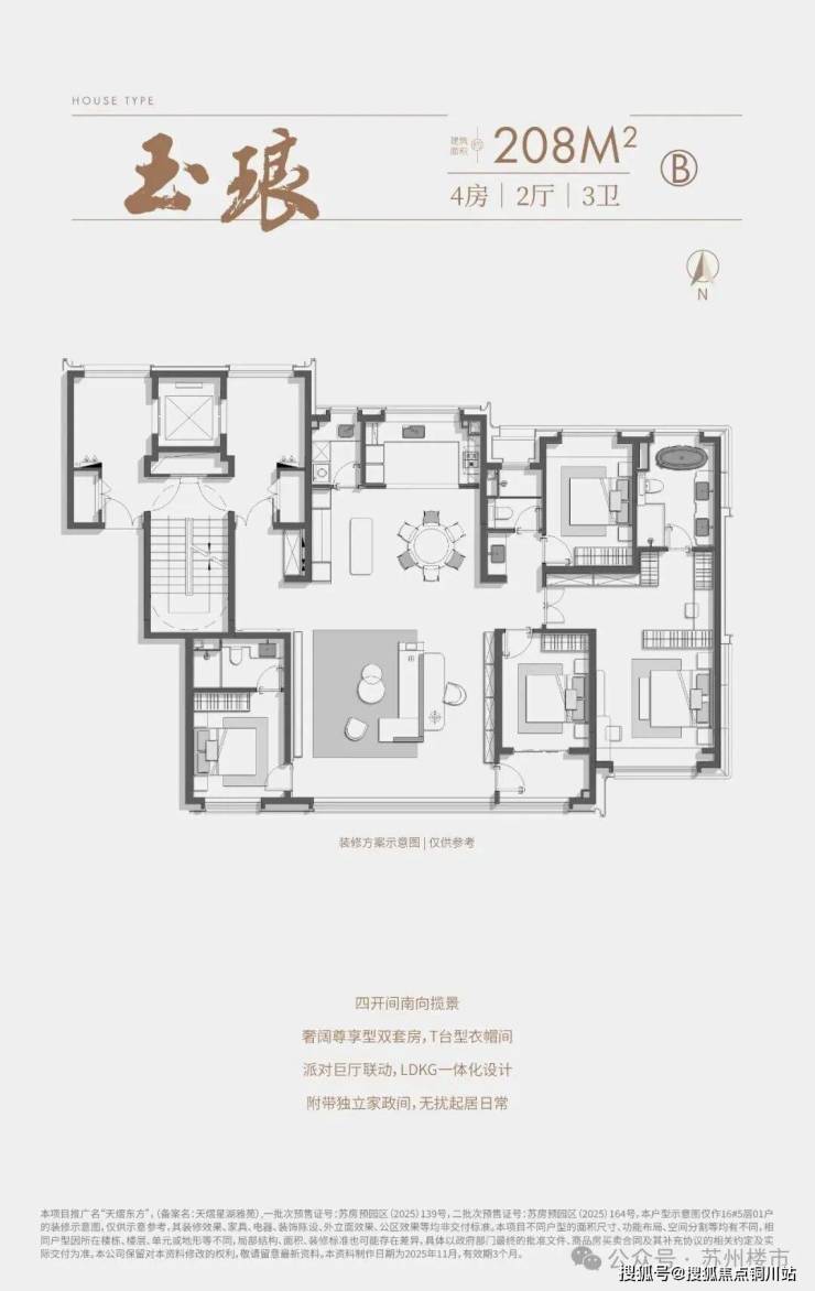 主力户型为建筑面积约208㎡四房,采用类一梯一户设计,强调居住私密性。
