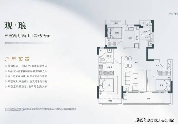 高标准适配需求。本着对产品精研的高标准以及对生活本身的深度洞察,观贤著项目从“收纳提升、雕琢细节、健康探索、智慧赋能、功能升级”五大维度,匠心雕琢9大空间模块,67项精妆细节,刷新精致生活标准。匠心规制建筑面积约89㎡(高层)、99㎡(高层)、99㎡(洋房)、109㎡ (洋房)四种不同面积产品,全部多功能三居的规划,兼顾两人世界、三口之家、康养改善等不同家庭结构人群的需求。