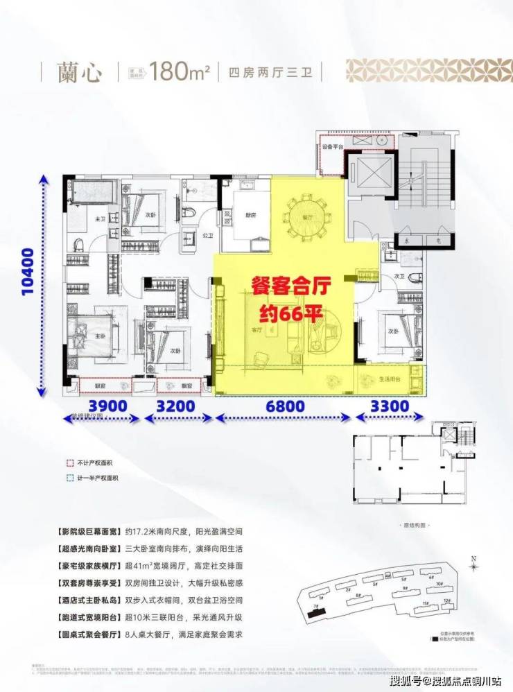 拿135方相比,是想说明刚需户型可以有与改善差不多的享受,讲究的是性价。如果非要拿差不多的户型来比,那么冠达•翠语兰庭的180户型,就很有可比性: