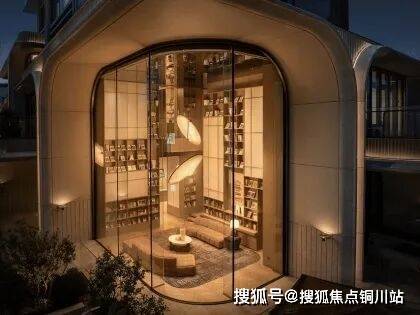 类似“钟书阁”的图书馆,大面积弧形落地玻璃搭配暖色调,氛围感不错: