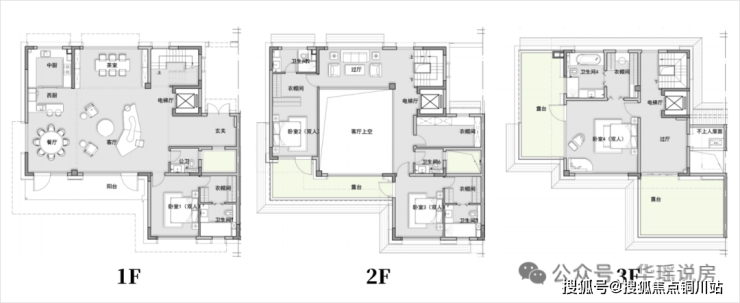 重点来看约360㎡的双拼户型,其尺度与功能十分奢侈——