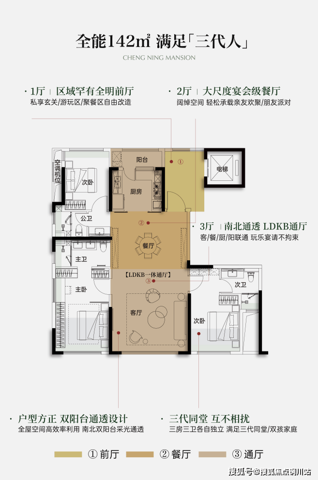7号楼建面约120-142㎡国广内环改善首创「三房三厅」,创新打造全明前厅、奢阔餐厅、LDKB一体通厅“三厅”设计,打破常规户型规划,为汉口内环家庭重定改善新标准。