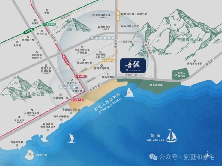 落位青岛鼎级豪宅资源带——石老人正席,约600米一线瞰海,迄今片区距海最近在售项目。西邻金家岭国际金融区,东依午山崂山,正对石老人,周边云集商业、教育、医疗、文体、艺术鼎级配套,于城市繁华中依山面海,平衡喧嚣与静谧。
