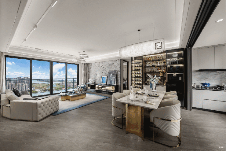 餐客厅采用LDKG一体化设计,空间开阔流畅,通风与采光效果极佳。客厅约5.7米的超大面宽,连接着宽敞的阳台,不仅增加了室内的通透感,还为家庭活动提供了充足空间,无论是家庭聚会、休闲娱乐还是日常起居,都能满足业主多样化的生活场景需求。