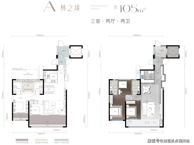 建面约105平的大三房,让首次置业就有改善的尺度。