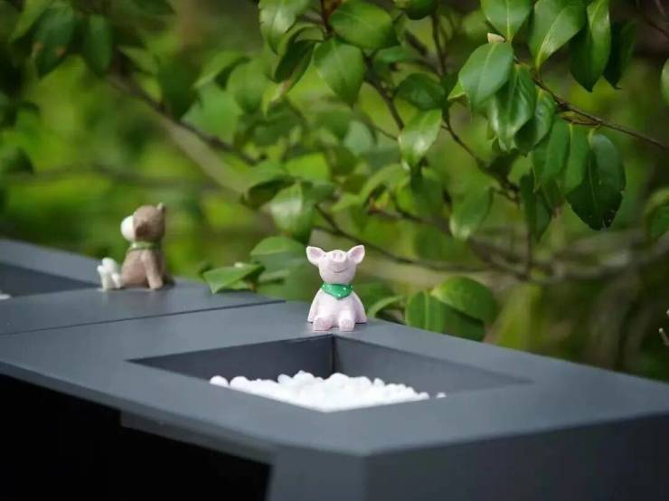 更夸张的是,就连小区内每一个垃圾桶上都有不同的小品点缀……