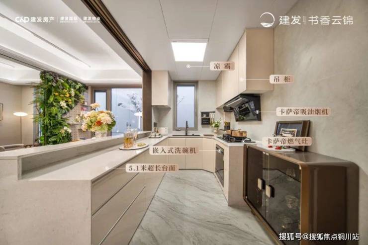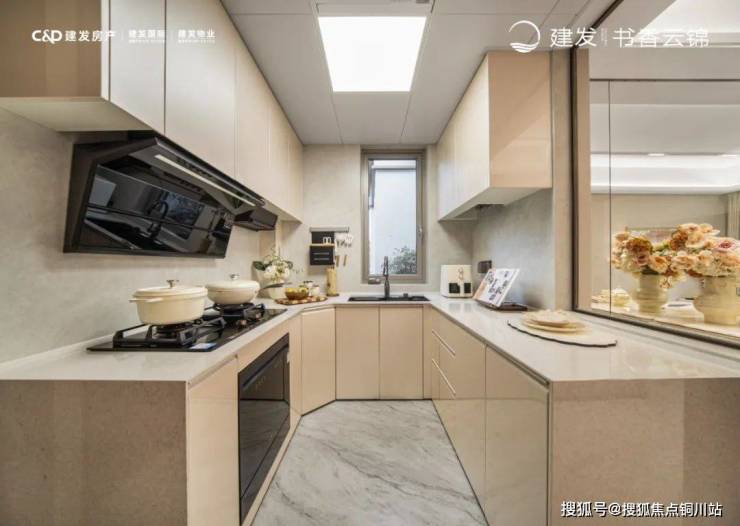 建发·书香云锦高的精装标准,在同区域内同档产品中位列前茅。比如:厨房采用的是建发幸福厨房理念,在91㎡样板房可以看到,半开放式设计配玻璃隔断,空间大且通透!5.1米超长台面和餐厅移门互动方便。U型布局贴合人体工学,可一条龙操作,大窗户采光通风佳,比传统110平厨房大,还留了双开门冰箱位,让烹饪成享受。
