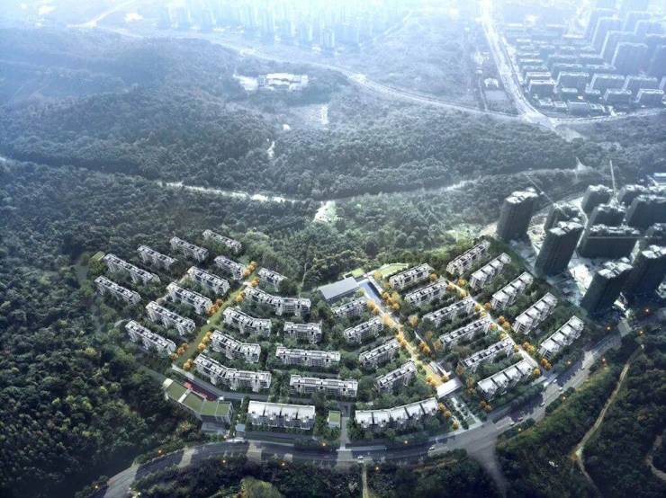 在东湖十分钟生态圈内,满目苍翠的花山区域和严西湖水域,武汉城建与仁恒发掘了这片三面环山一面水的主城区难得地貌,打造一片容积率低至1.01,满满森系“安缦”风的纯粹叠墅区。