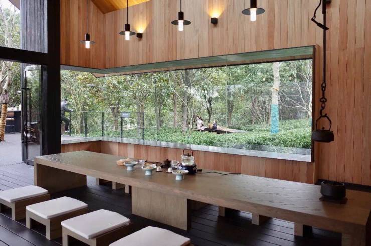 在茶林驿站,自然生长的迎客松分列两旁,充满了仪式感。迎客松前设置了一汪水钵,可舀取一瓢水,以浇水的方式同访友表示敬意。行至茶林驿站内,有专业茶艺师的陪伴,扑面而来的茶香,一杯常家山香茗,让人感悟自然之美好馈赠。(TIPS: 这里还可预约小型团建、会议、品茶、私宴哦!)