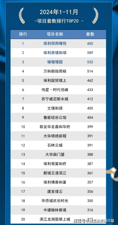 2024年1-11月,保利·国贸璟上以462套的销售套数位列南京TOP5!