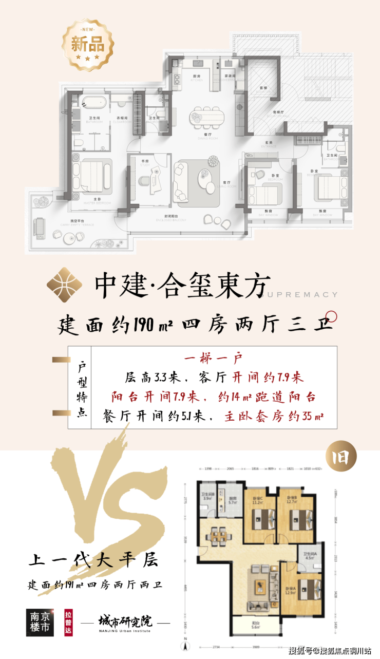 我翻阅链家,目前河西中部建面约190㎡户型,非常少见。即便有类似面积段,也只能实现四开间朝南,且空间难以均衡。中建·合玺东方建面约190㎡户型,对照传统户型拥有碾压级优势,空中大露台+近100%实用率+主卧小家化,它有超级性价比