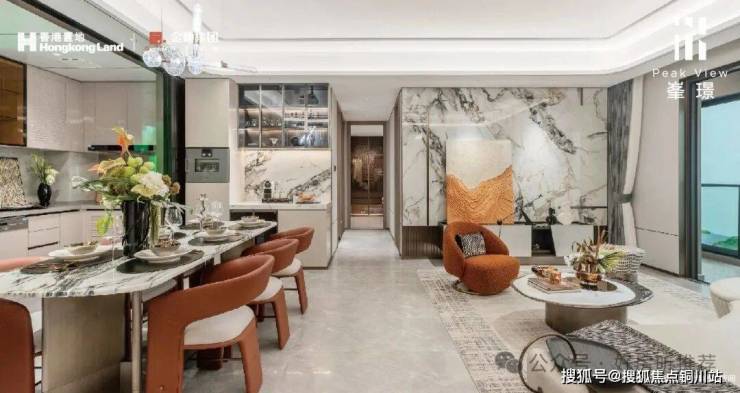 邀请全球知名的HWCD团队打造,拥有丰富的豪宅设计经验及效果把控能力,能准确地把握豪宅的设计风格和定位。整体采取现代港奢的设计风格,从港风岩板背景墙、不锈钢/实木贴皮踢脚线、大理石门槛石、特普丽墙布、水刀拼花大理石地面、弧形吊顶、四开门瓦楞玻璃门再到室内玄关预留收纳柜空间、人体工程学飘窗、半封闭阳台等精微细节,演绎纯正港式轻奢风格。