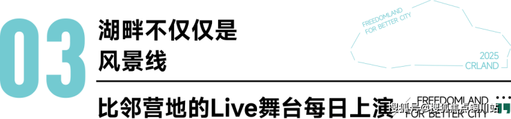 露营社、渔趣社、运动社、有机农夫市集形成“4+X”社群体系,创造比邻课堂、达尔文研学课堂、湖畔露营节、比邻影院、比邻玩水节、亲子家庭日、烧烤BBQ、音乐节、瑜伽课等丰富Live现场。