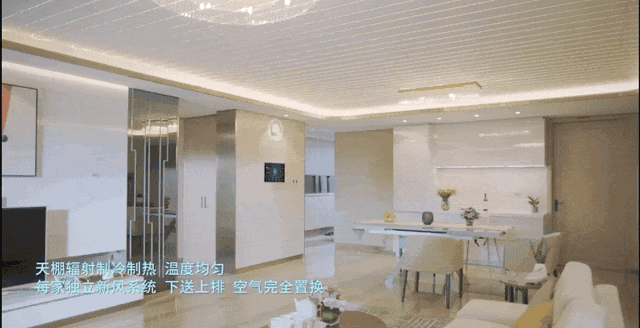 而樾湖尚郡全屋通过地源热泵系统+顶棚辐射系统,室内常年保持约18-26℃,包括厨房和卫生间的温度也一样,无需暖气,不用风扇,没有空调,也没有吹风感,直接解决了忽冷忽热的烦恼。