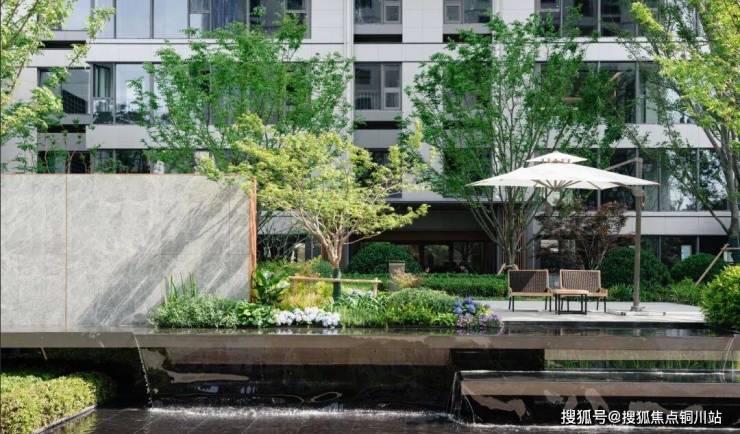 在园林景观的打造上,不同种类的绿植与花境,错落分布各处,高低乔木、四季花草,各有层次章法,共同带来一幅高级审美的绝美画卷。