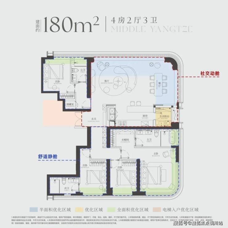 对比区域多数约180㎡传统竖厅或单面观景户型,长江天元的景观占有力堪称“降维打击”。传统约180㎡户型观景面宽通常在约6-8米,而联投长江天元约180㎡户型搭载长近14米的L型无界观景面——正面约9.3米直面长江,侧面约4.55米延伸观江,基本0外墙设计让江景如巨幕般在眼前铺陈,真正实现270°环幕观景体验。