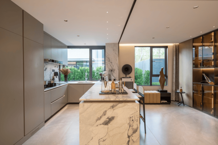 奢阔方厅内,每一位家庭成员既各自独立,又紧密相连:父亲在厨房烹饪,孩子在客厅玩耍,母亲在阳台练瑜伽——目光所及之处,尽是一家人在空间内流动的融洽与亲密。