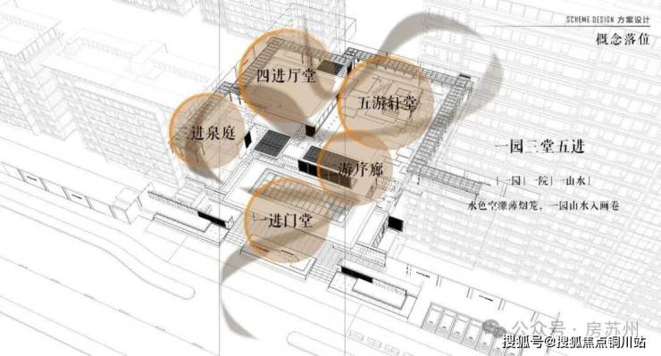 项目以江南古典园林为蓝本,萃取东方庭园的造园工法,融合国风宋韵之雅趣,匠筑“两轴三带八园十二景”的景观格局,为昆山层峯人士敬献东方臻品。