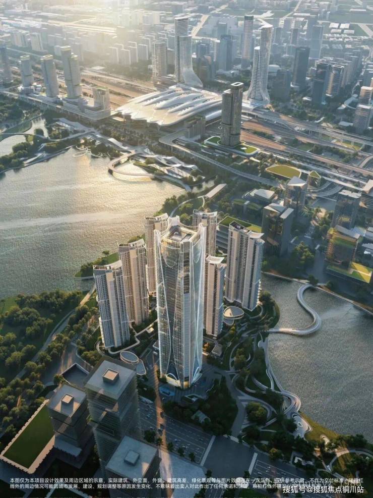 平面图上来看,项目将打造一栋50F超塔,为办公和酒店和5栋45F住宅。
