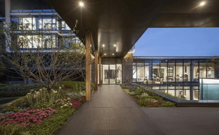 全长约158米的风雨连廊,巧妙地贯穿整个社区,营造了一种尊贵的无风雨归家景观享受。这个连廊空间体系不仅拓展了核心功能区域,更与周边庭院有机融合。连廊之中,精心布置的帷幔艺术虚廊,巧妙地将实与虚相融,打造出独特的穿行体验。无论晴雨,皆可在此悠然欣赏风景,享受从容的生活时光。