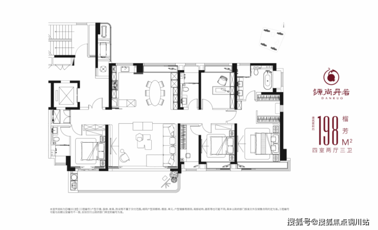 <全社区4栋248户>:源尚丹若项目整体规划4栋31层共计248户高层住宅,全域户型打造主力建面约198㎡大平层,营造更纯粹、更高端的圈层邻里结构。