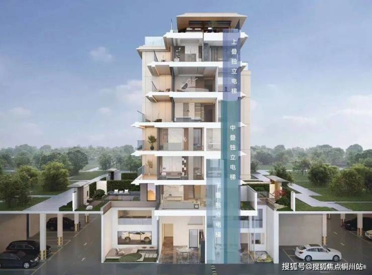 受益于退台式结构的设计,中叠产品打破了传统设计的局限,通过私家电梯串联,享有一层北向的私家花园及阳光地下室,使中叠也能拥有与上下叠同样的居住体验以及圈层感受。