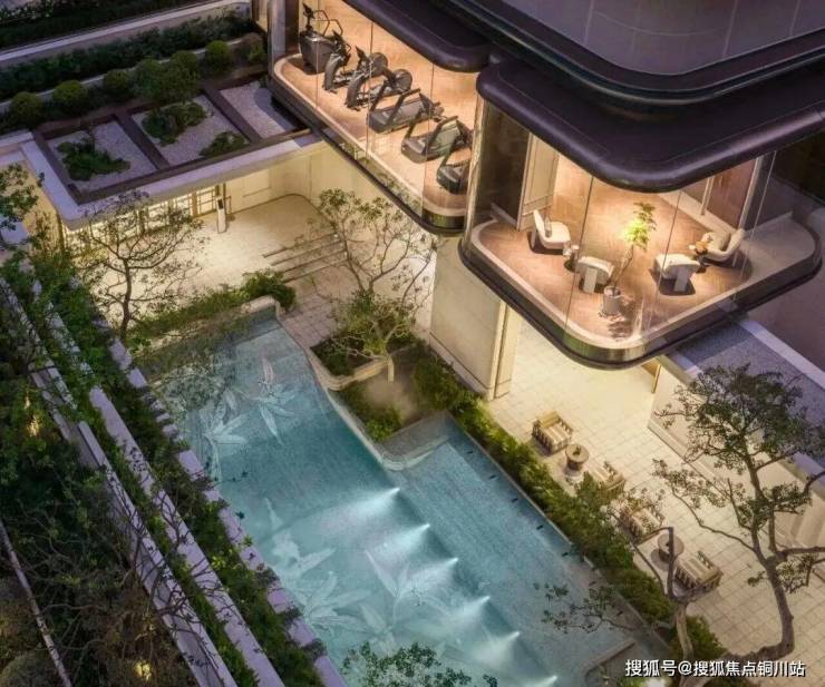 全维立体园林贯穿了无界生息的景观系统,下沉式庭院的山谷溪涧景观,与可开合的室内恒温泳池、户外戏水池、悬挑的“天空会所”健身房彼此对望,让身处不同区域的人通过空间的交叠实现交流闭环。