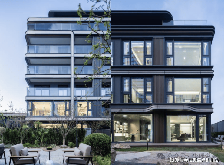整体建筑以现代简约风格为主,建筑立面则使用了大量的铝板、金属格栅以及少量的仿石材料,不仅注重美学呈现,更兼顾实用性;