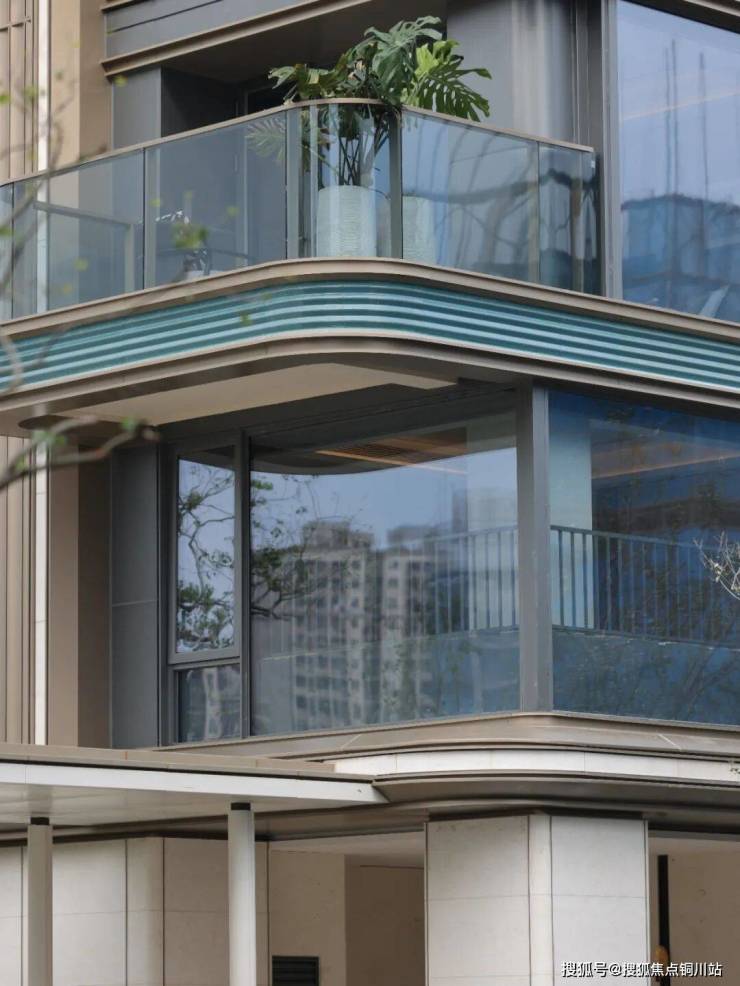 香槟色铝板:轻盈如云朵,三玻两腔超白LOW-E玻璃透得进整片天光,竖向线条嵌着白色石材,是现代骨相里的东方气韵;