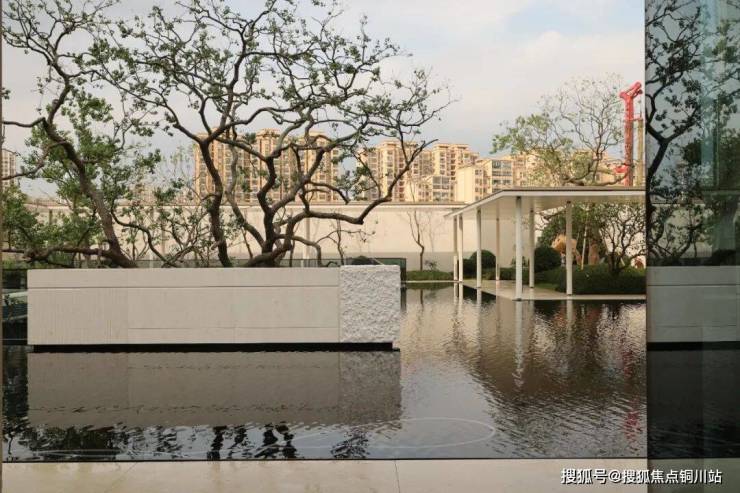 社区核心的视觉焦点,1600㎡镜面水景与地面齐平,人走在旁边像踩在云端;