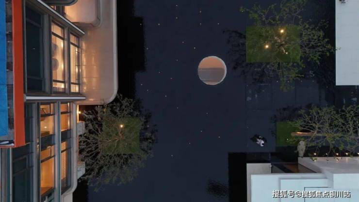 四时水镜还融入了繁星与满月意象,池底灯光如繁星闪烁,3米直径的圆形天井(底端扩至5.6米)与地下光路相通;