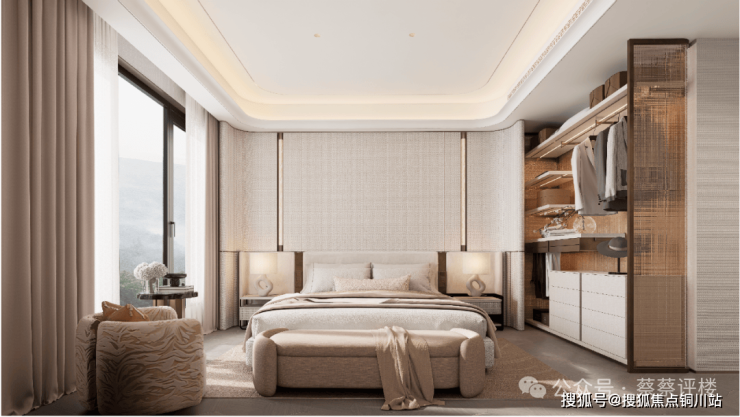 主卧套房则完整保留了一位家庭主人的尊严:步入式衣帽间、独立卫浴、南向飘窗,在紧凑的面积中营造出奢侈的居住体验。
