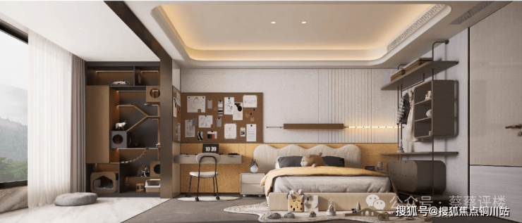 另一个巧思在于南向次卧的全周期可变设计。通过灵活隔断改造成双孩房——一面可移动的墙体,就能适应孩子从幼儿到青少年的全周期成长。