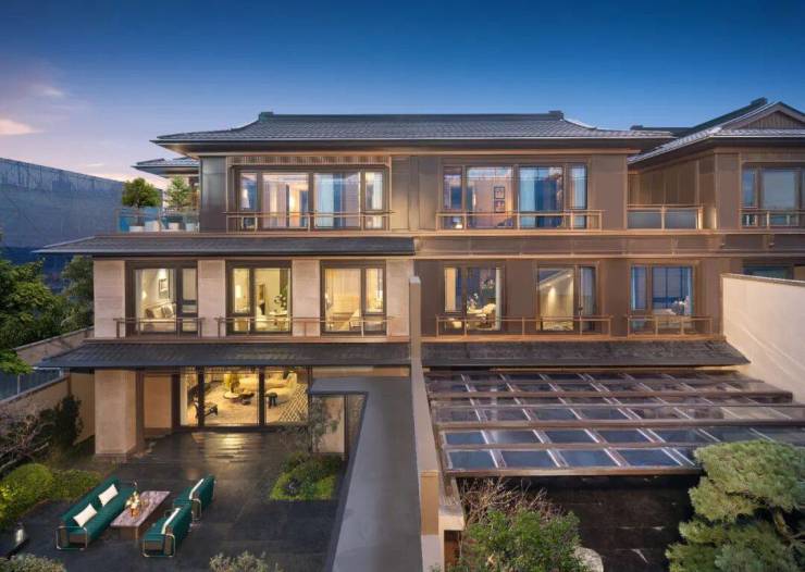 建筑形制创新融合了宋风合院与民国风小高层,合院以金属型材与臻贵石材勾勒当代东方轮廓,小高层以全石材干挂立面镌刻当代质感。通过极致的窗墙比、通透采光与简约立面,让东方风骨与现代生活完美交融。