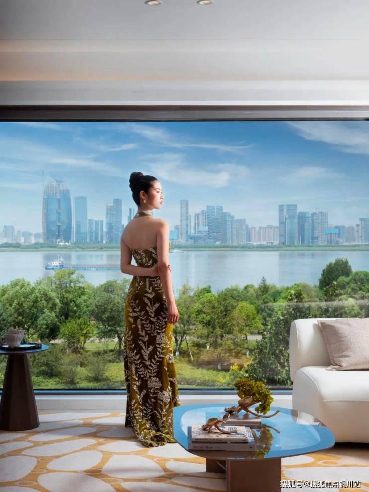 整个项目,每户住宅层高做到3.05米,每户沿江面均配置全景落地LOW-E玻璃幕墙,实现约7.4—9米的看江横厅、全景舱270度无界观江体验。