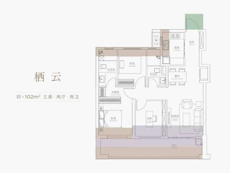 建面约102㎡全能3房