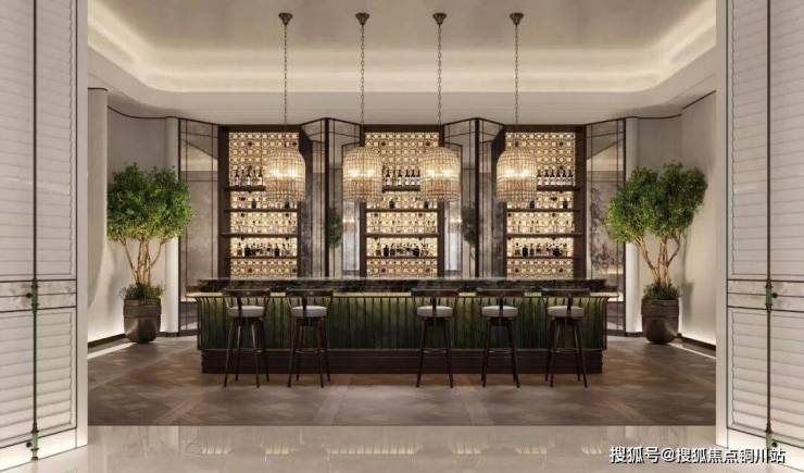 背后是摩登复古的休闲吧,对标奢华酒店大堂。