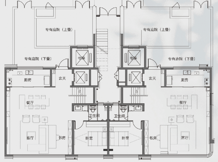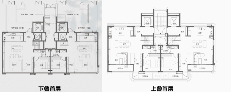 上叠业主从架空车库和首层乘电梯上楼入户,走的都是独立私享电梯厅,根本不会和对门邻居碰面。