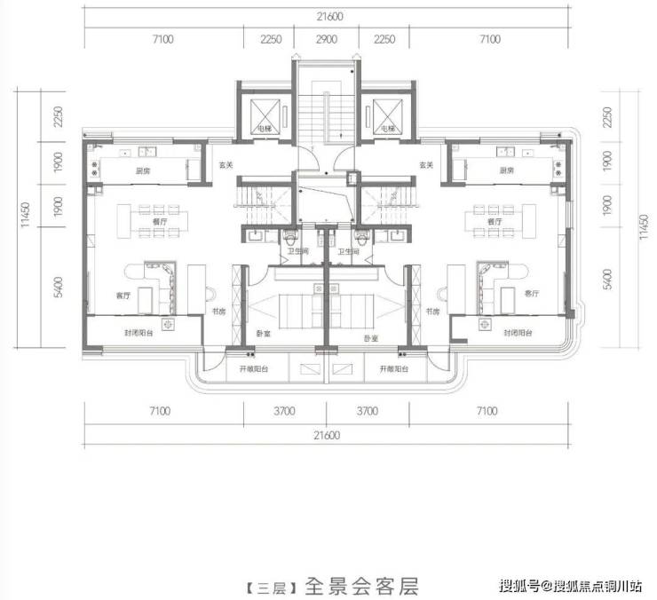 一个单元配置两部电梯、一部楼梯,都「外挂」于建筑体外,自然不用占户内面积。