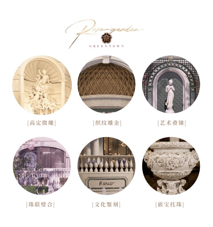 从石材的甄选与精密拼接,到阳台铁艺栏杆的柔美曲线锻造,再到建筑各处精心定制的玫瑰徽章,无一不遵循着传统手工的经典营造法则,展现了绿城 “用50年眼光做当代建筑”的执念。