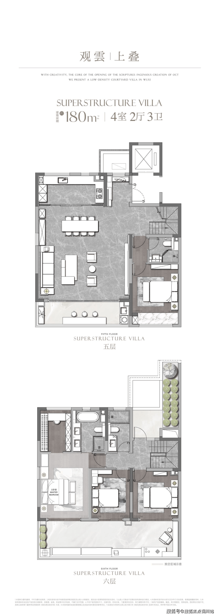 项目分为A、B两个地块开发,其中A区为8栋叠墅(高4-6层),B区为14栋小高层(高11-17层),户型产品为建面约128-310㎡。