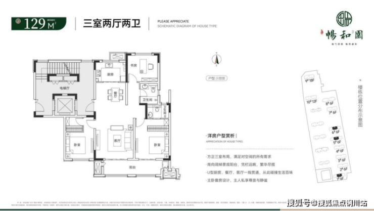 先看洋房129㎡户型,三室两厅两卫是经典的四叶草户型,LDK一体化设计,是目前主流的户型格局,实用性很高。