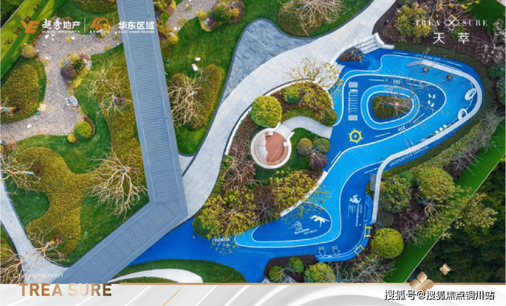 越秀天萃共规划有14栋住宅和部分商业,总建面约24万方,是近期难得的大盘,但从楼栋布置上看,越秀天萃将更多空间让位给了自然。小区内实景示范区建面有约3000㎡,内部规划“一环一链五屿”约600米的“微汗跑道”和活力共享水系,步行其中如同置身公园,五感放松。